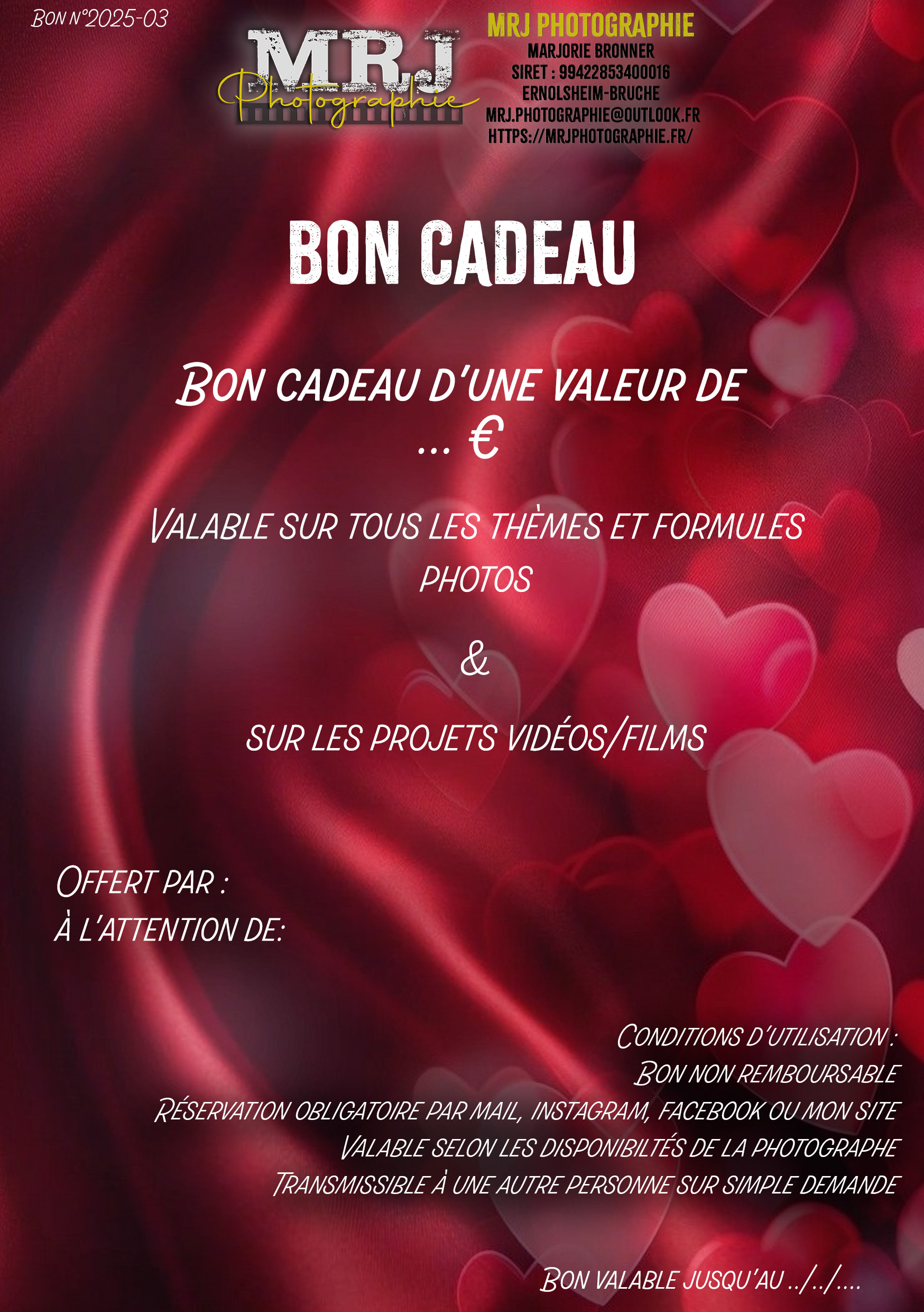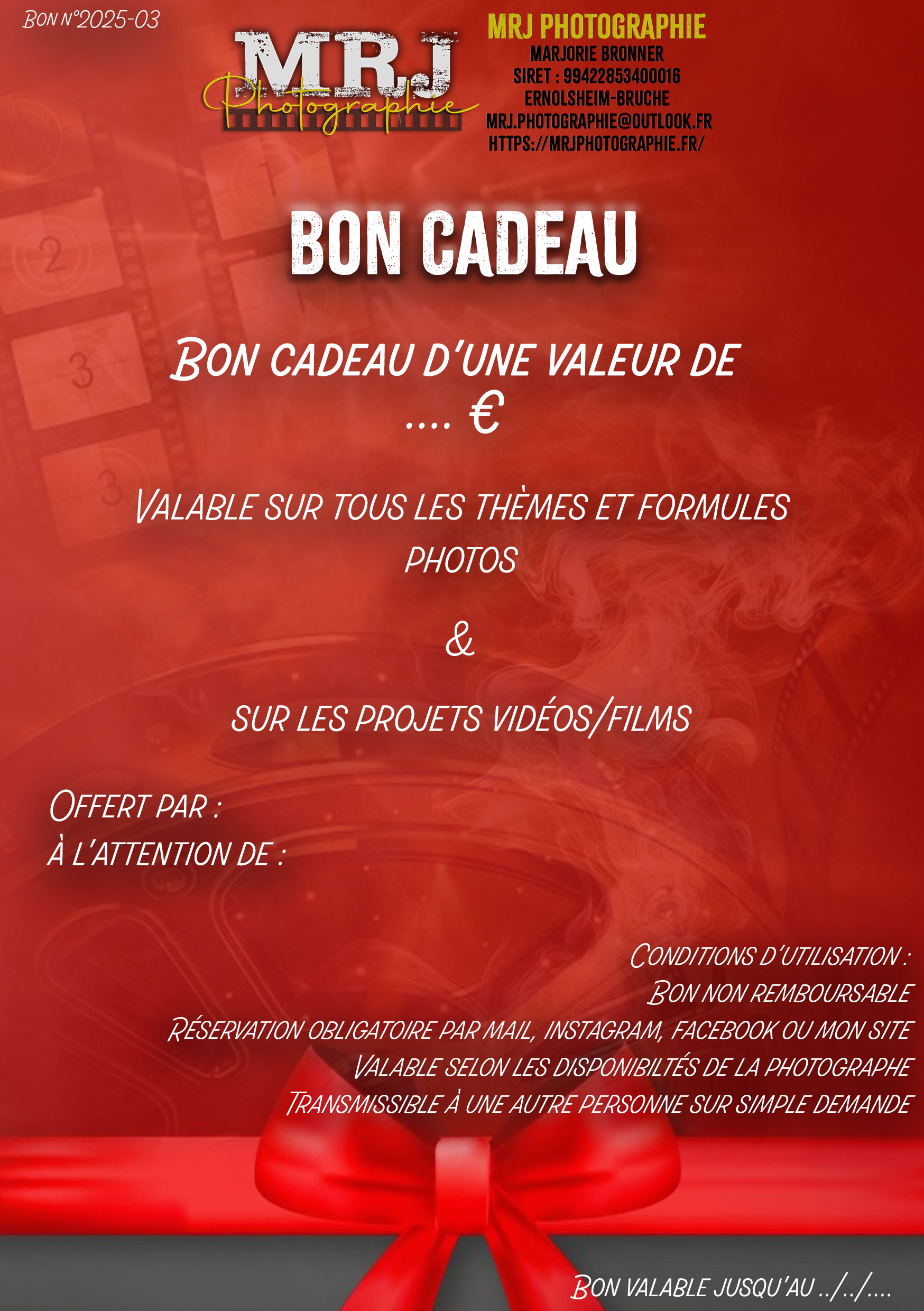 Pour offrir un bon cadeau, il suffit simplement de me contacter et de choisir le thème et la formule que vous souhaitez offrir : cinématographique, automobile, couple, grossesse, animal, portraits, sport...