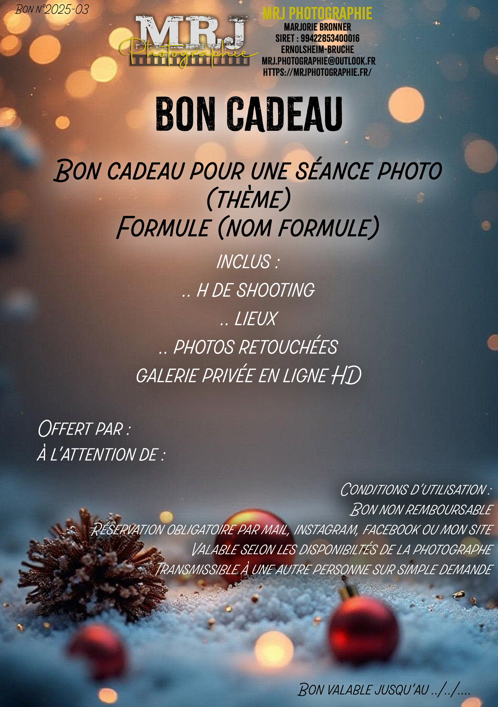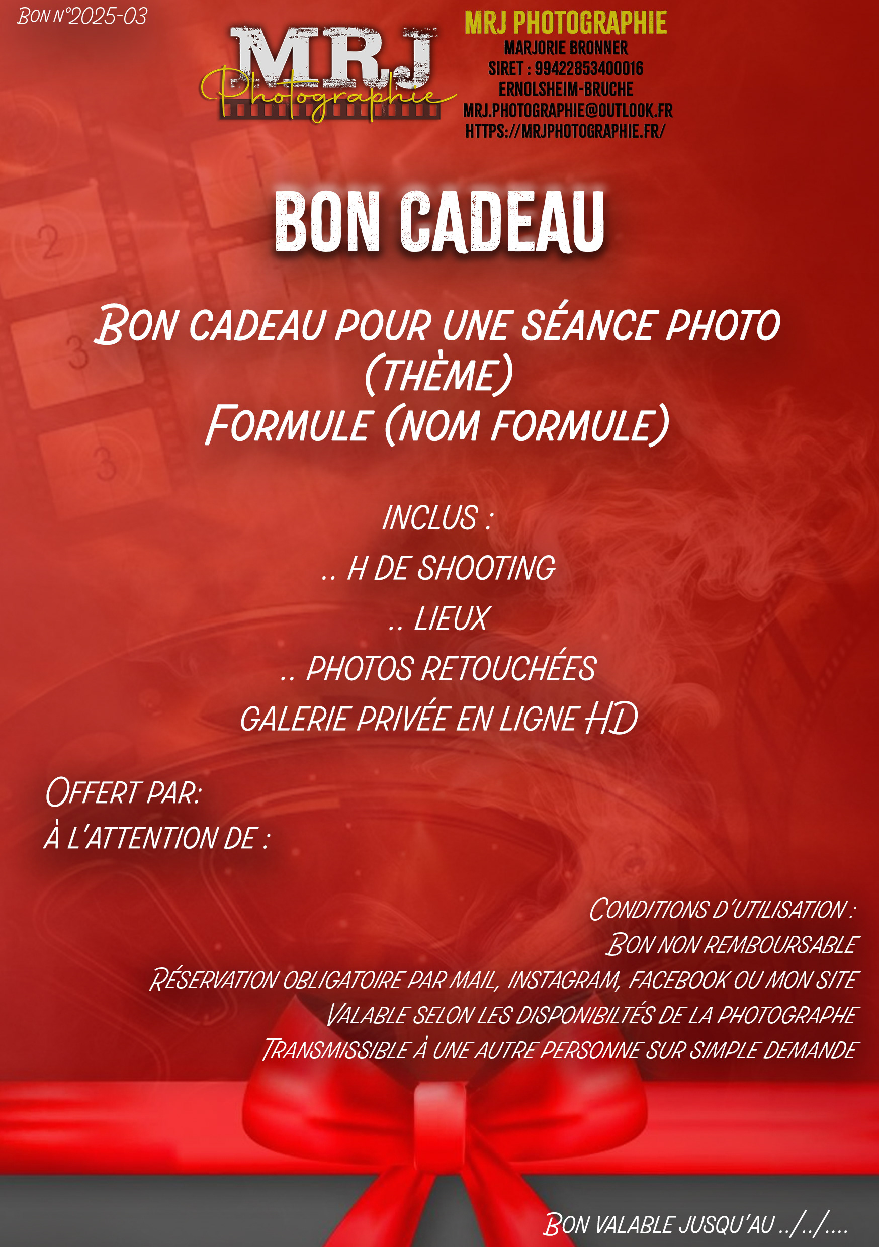 Bons cadeaux pour une séance photo précise
